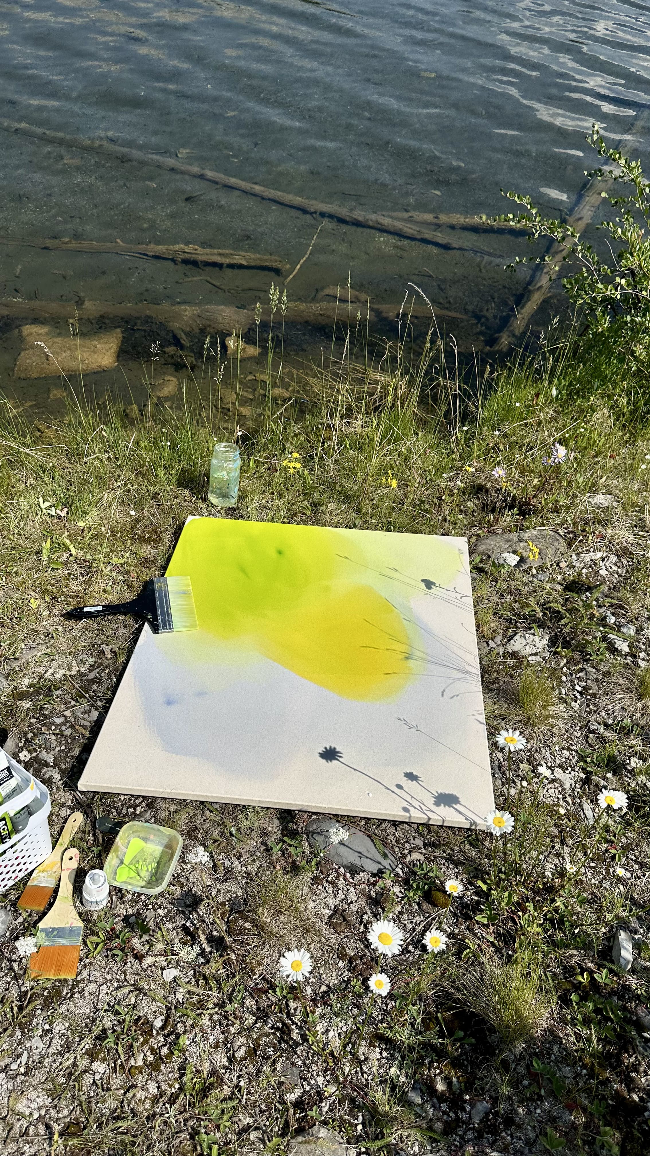 By the water’s edge, the painting takes on a life of its own, infused with the serene energy of the environment. Every detail is shaped by the beauty that surrounds me.